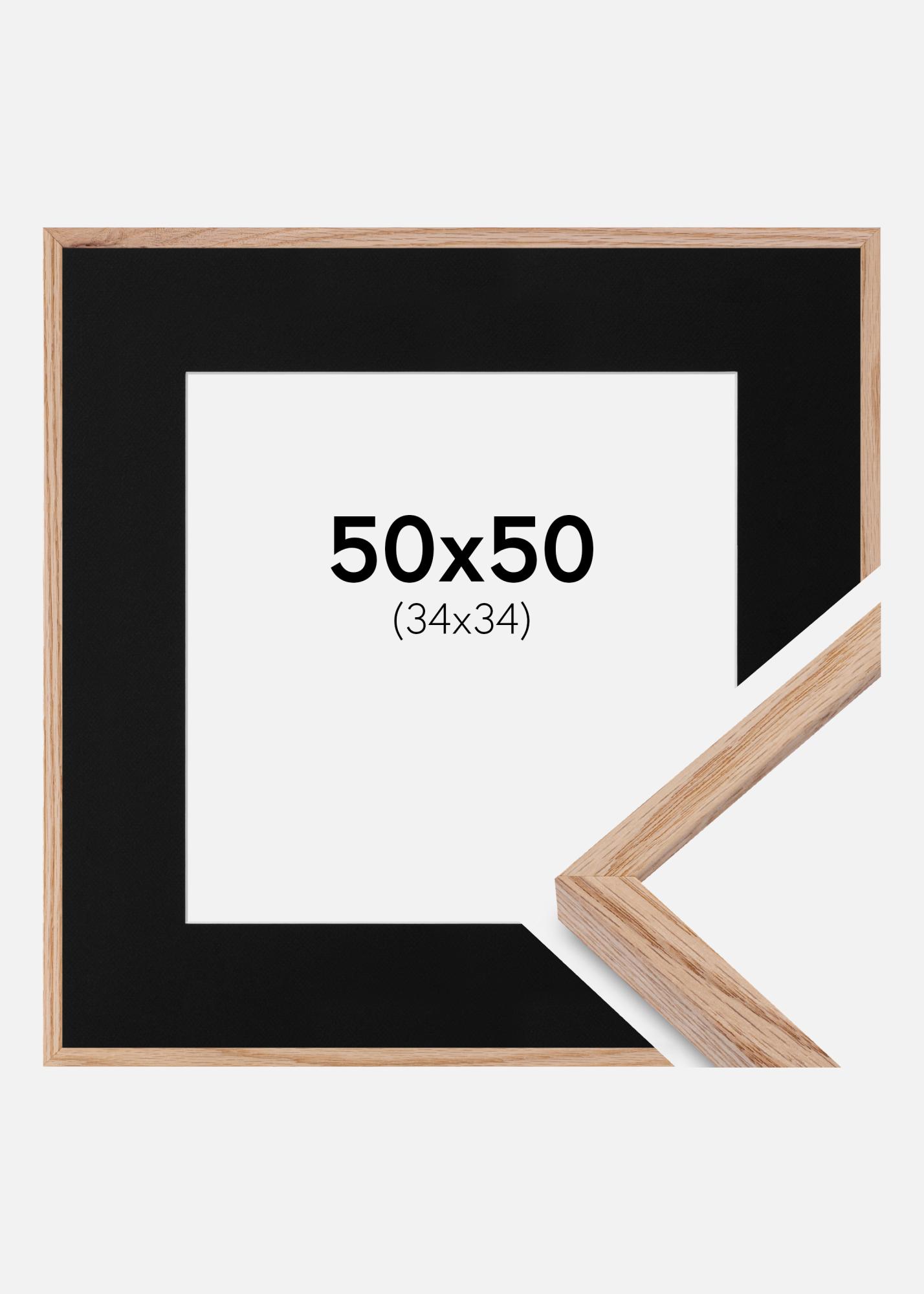 Moldura E-Line Carvalho 50x50 cm - Passe-partout Preto 35x35 cm