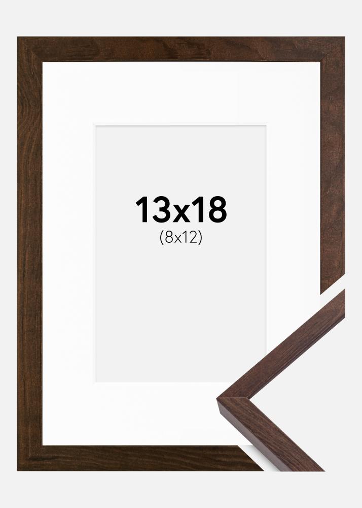 Moldura E-Line Nogueira 13x18 cm - Passe-partout Branco 9x13 cm