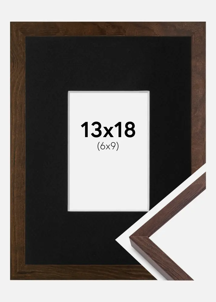 Moldura E-Line Nogueira 13x18 cm - Passe-partout Preto 7x10 cm