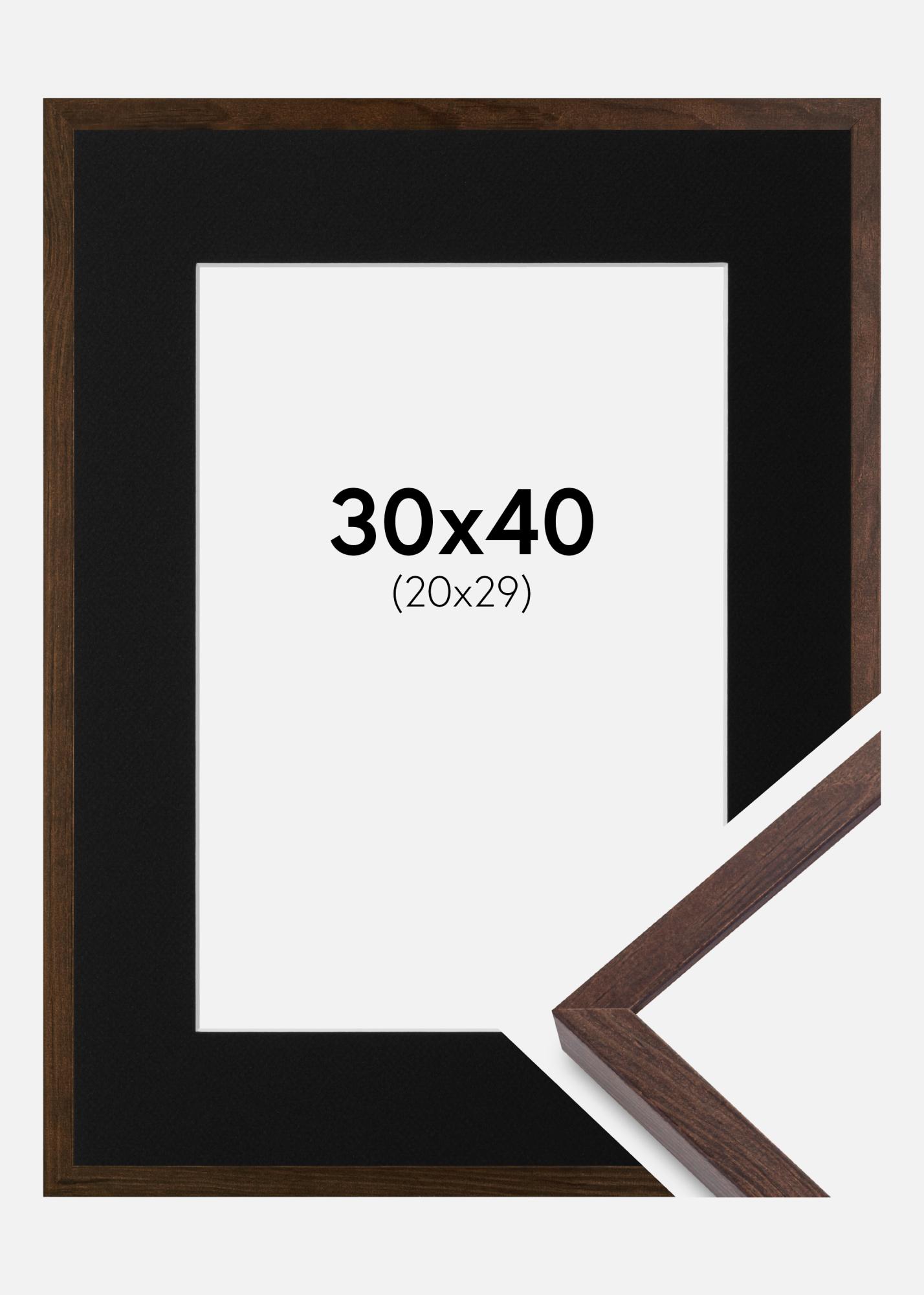 Moldura E-Line Nogueira 30x40 cm - Passe-partout Preto 21x30 cm