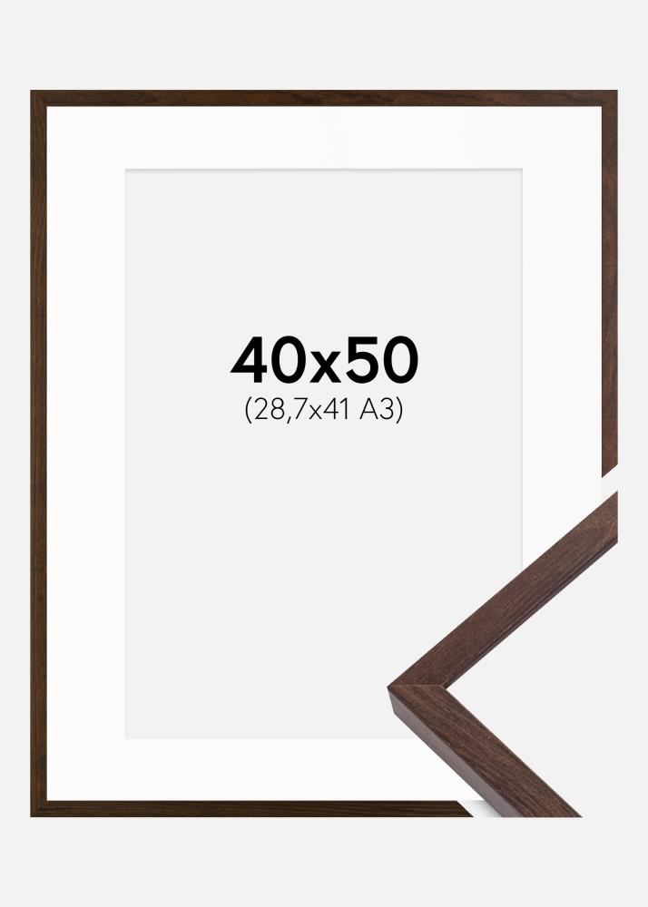 Moldura E-Line Nogueira 40x50 cm - Passe-partout Branco 29,7x42 cm (A3)
