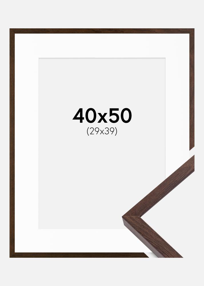 Moldura E-Line Nogueira 40x50 cm - Passe-partout Branco 30x40 cm