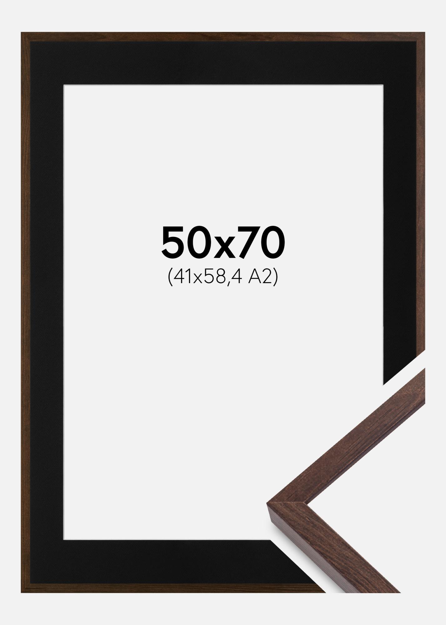 Moldura E-Line Nogueira 50x70 cm - Passe-partout Preto 42x59,4 cm (A2)