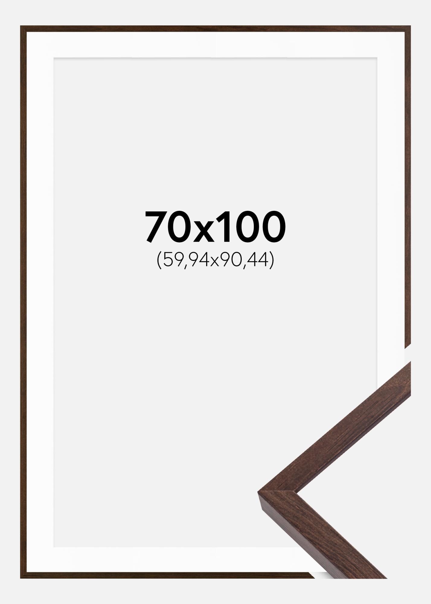 Moldura E-Line Nogueira 70x100 cm - Passe-partout Branco 24x36 inches