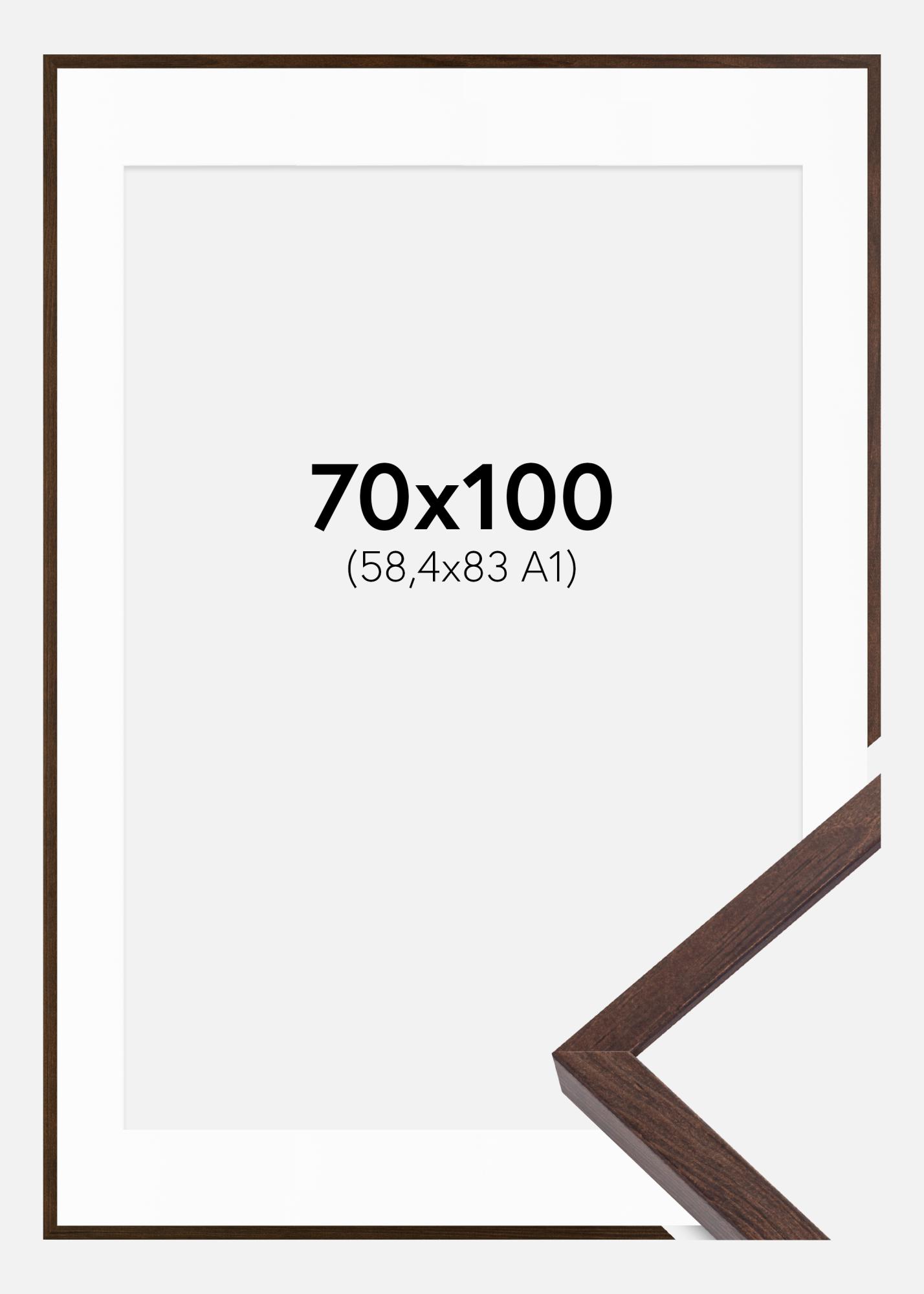Moldura E-Line Nogueira 70x100 cm - Passe-partout Branco 59,4x84 cm (A1)