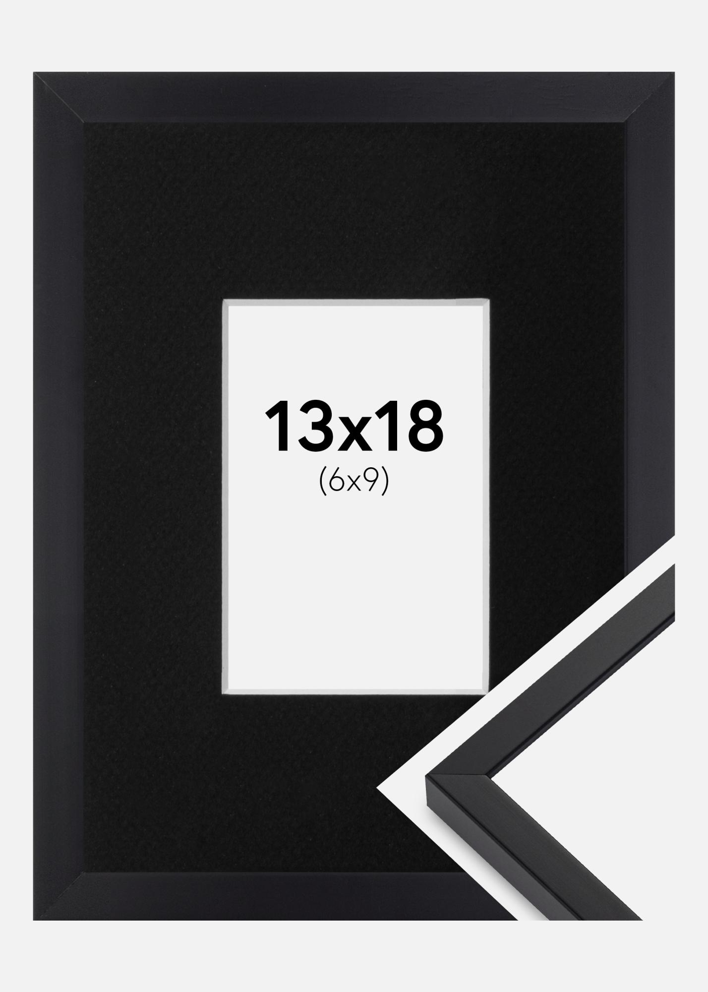 Moldura E-Line Preto 13x18 cm - Passe-partout Preto 7x10 cm