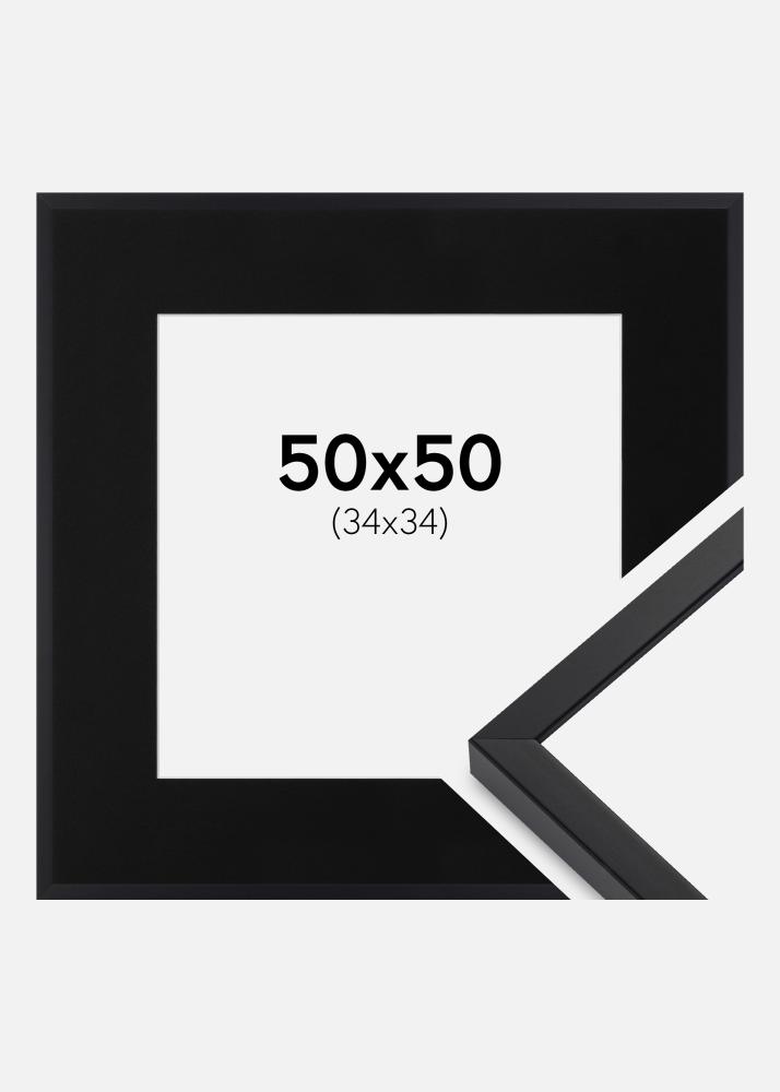 Moldura E-Line Preto 50x50 cm - Passe-partout Preto 35x35 cm
