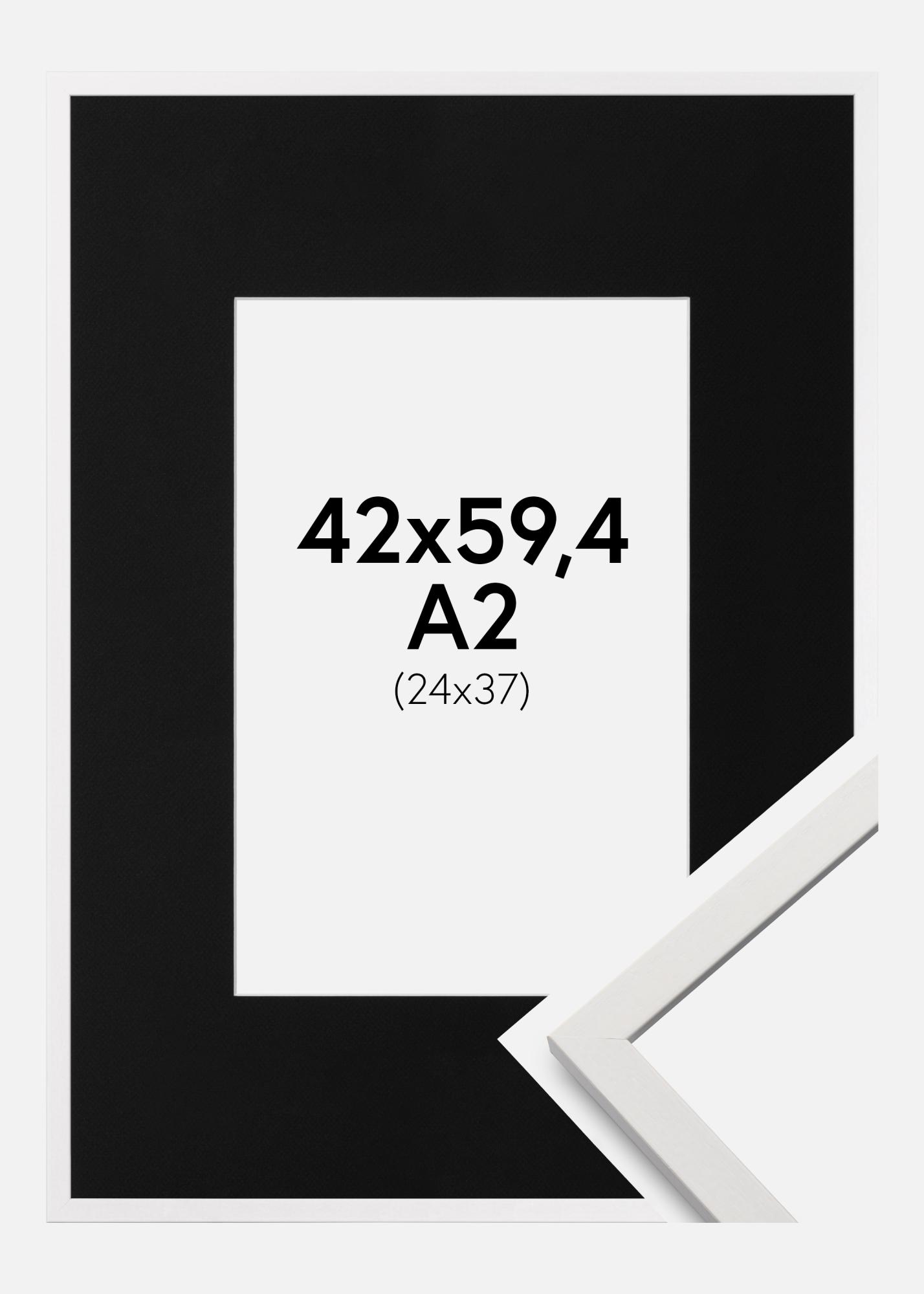 Moldura Edsbyn Branco 42x59,4 cm (A2) - Passe-partout Preto 25x38 cm