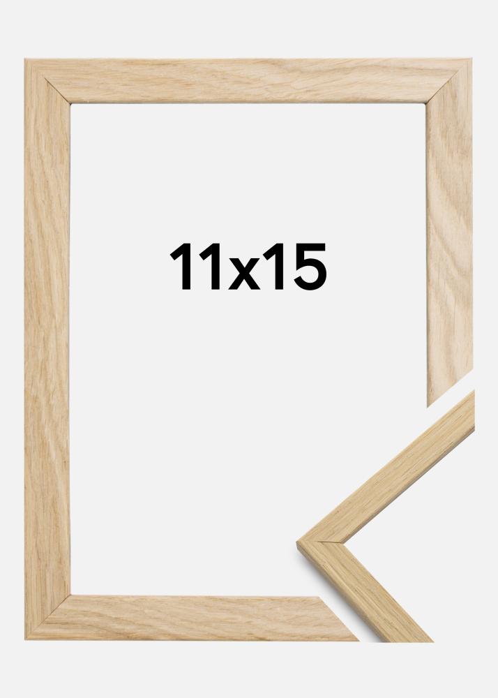 Às vezes, recebemos a pergunta de por que a moldura é feita de folheado de carvalho e não de carvalho maciço, se é para ser uma moldura de qualidade. A razão para isso é que é difícil obter uma superfície controlada quando se trata de carvalho maciço, pois muitas vezes há variações de cor em diferentes partes da madeira, o que em alguns contextos pode ser adequado. Mas numa moldura, isso só faria com que partes da moldura parecessem descoloridas.