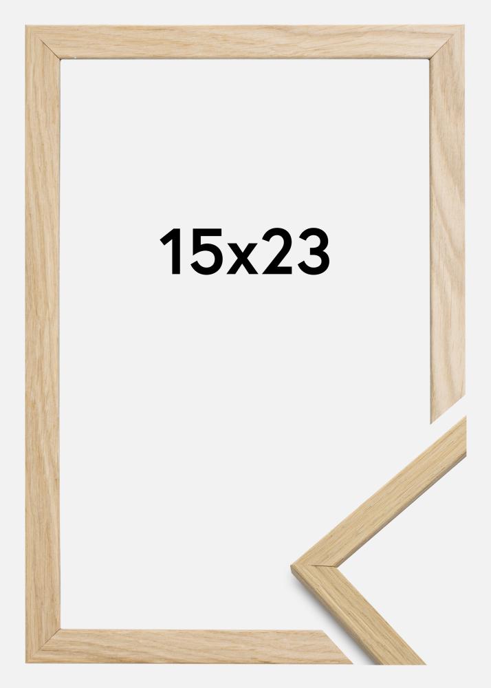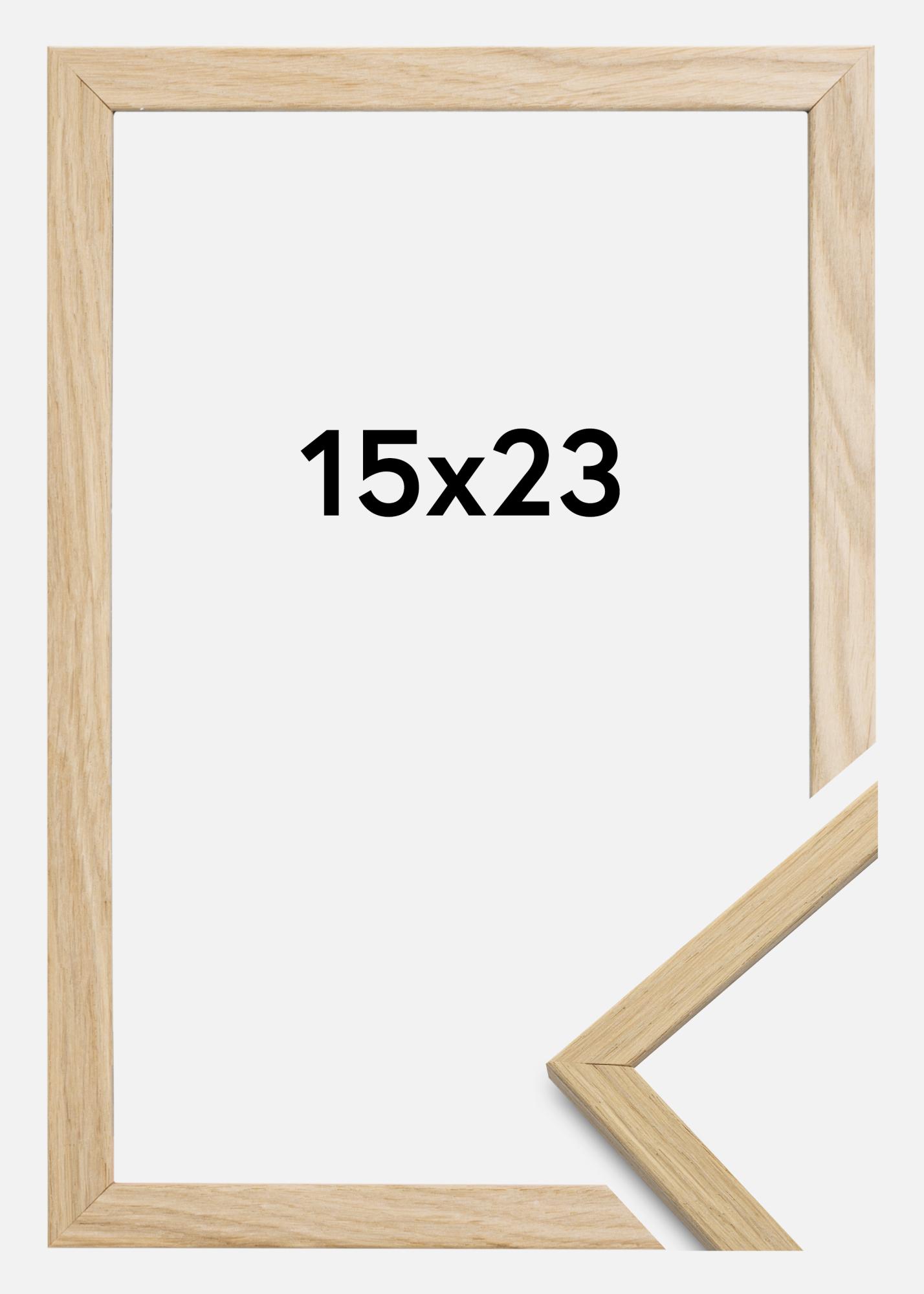 Às vezes, recebemos a pergunta de por que a moldura é feita de folheado de carvalho e não de carvalho maciço, se é para ser uma moldura de qualidade. A razão para isso é que é difícil obter uma superfície controlada quando se trata de carvalho maciço, pois muitas vezes há variações de cor em diferentes partes da madeira, o que em alguns contextos pode ser adequado. Mas numa moldura, isso só faria com que partes da moldura parecessem descoloridas.