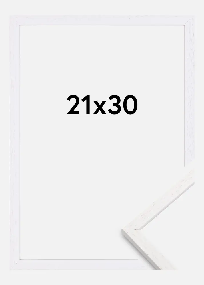 Esta moldura sueca de alta qualidade em branco frio possui vidro float, que proporciona uma superfície mais uniforme e possui propriedades de luz um pouco melhores do que o vidro comum. O vidro float também possui proteção UV de 40-45%.