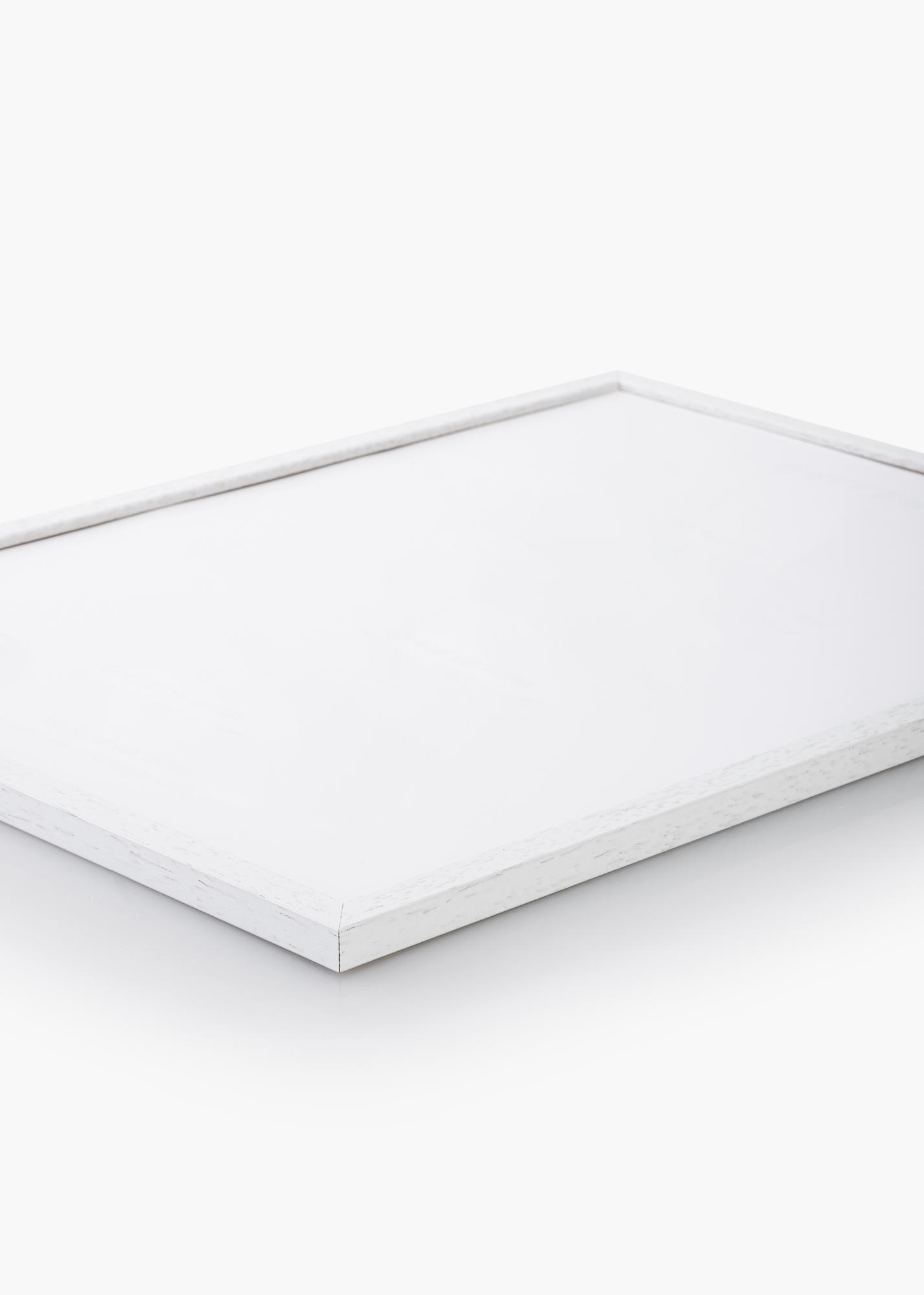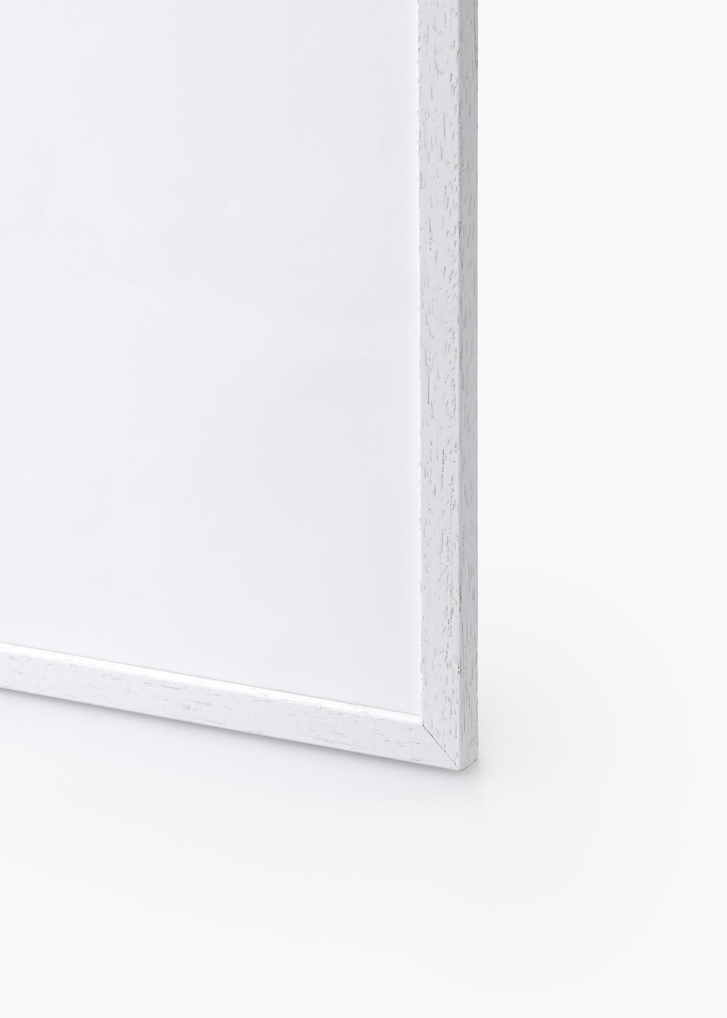 Esta moldura sueca de alta qualidade em branco frio possui vidro float, que proporciona uma superfície mais uniforme e possui propriedades de luz um pouco melhores do que o vidro comum. O vidro float também possui proteção UV de 40-45%.