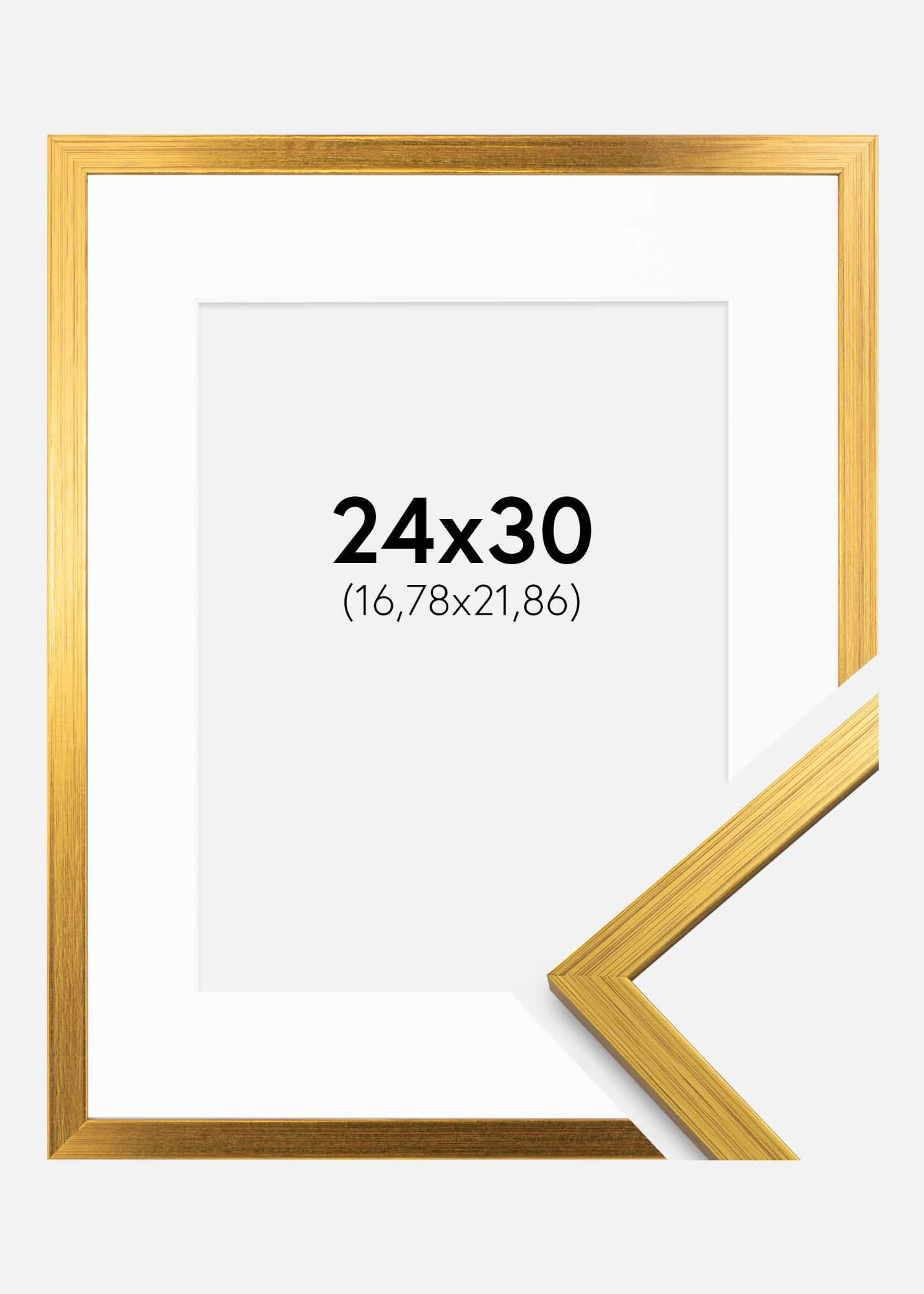 Moldura Edsbyn Dourado 24x30 cm - Passe-partout Branco 7x9 inches
