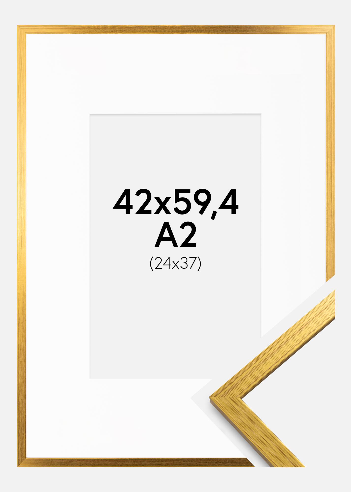 Moldura Edsbyn Dourado 42x59,4 cm (A2) - Passe-partout Branco 25x38 cm