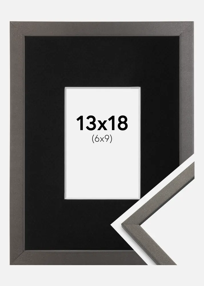 Moldura Edsbyn Grafite 13x18 cm - Passe-partout Preto 7x10 cm