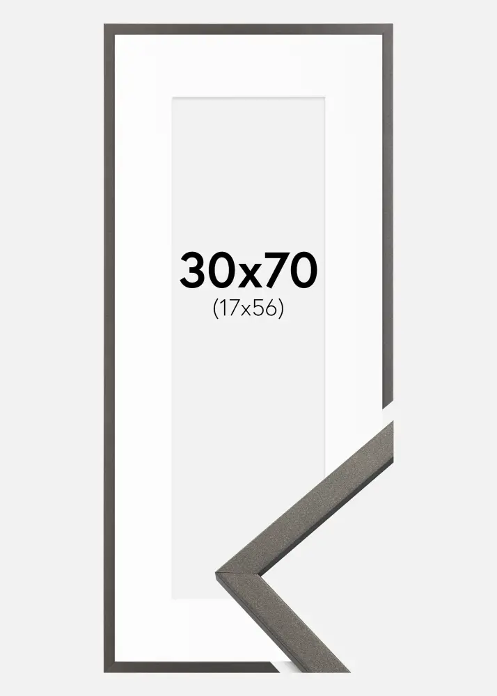 Moldura Edsbyn Grafite 30x70 cm - Passe-partout Branco 18x57 cm