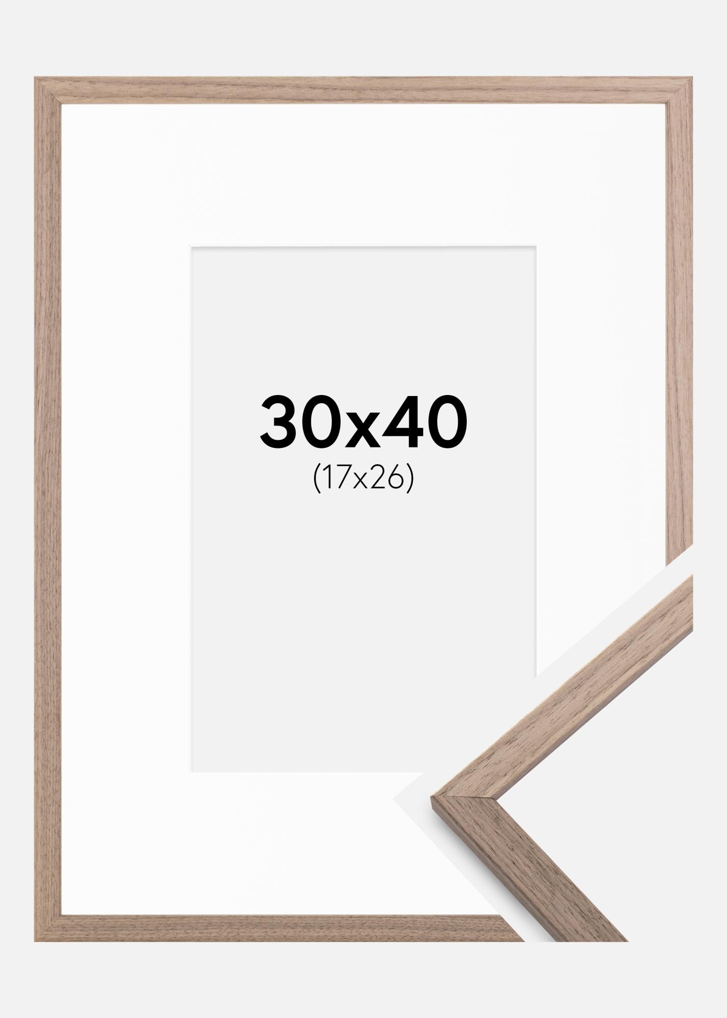 Moldura Edsbyn Nogueira-claro 30x40 cm - Passe-partout Branco 18x27 cm
