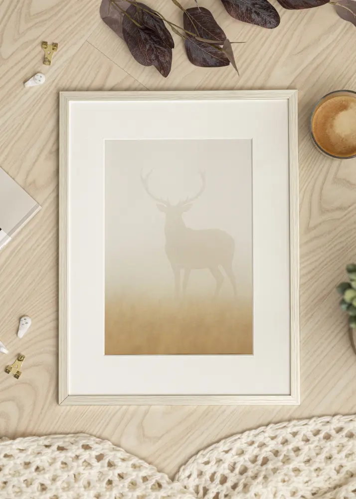 Um passe-partout branco cria um belo espaço entre a imagem e a moldura, oferecendo uma dimensão mais profunda e atraindo o olhar para o tema. Isso é particularmente benéfico para destacar os detalhes e as cores da imagem.