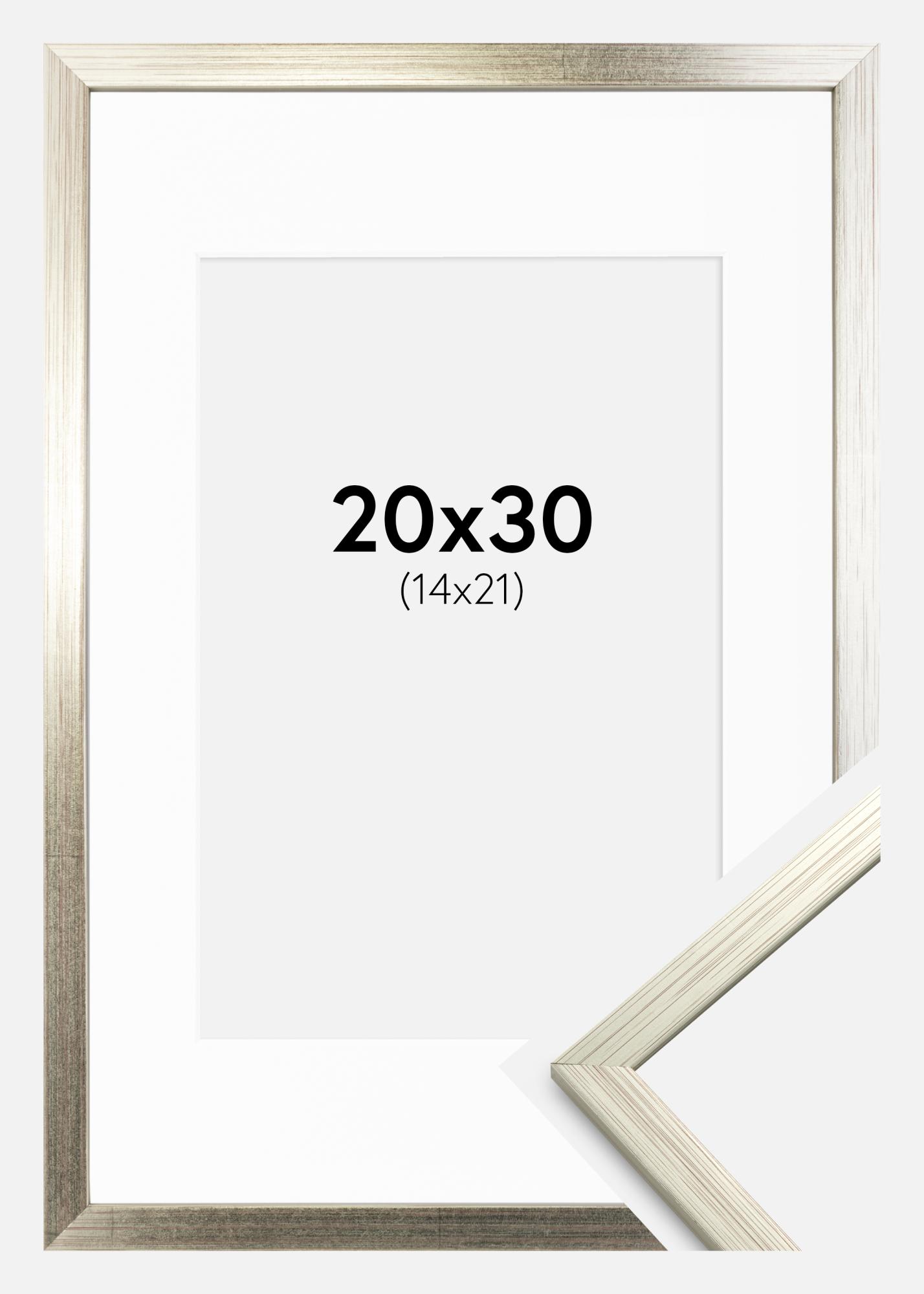 Moldura Edsbyn Prateado 20x30 cm - Passe-partout Branco 15x22 cm