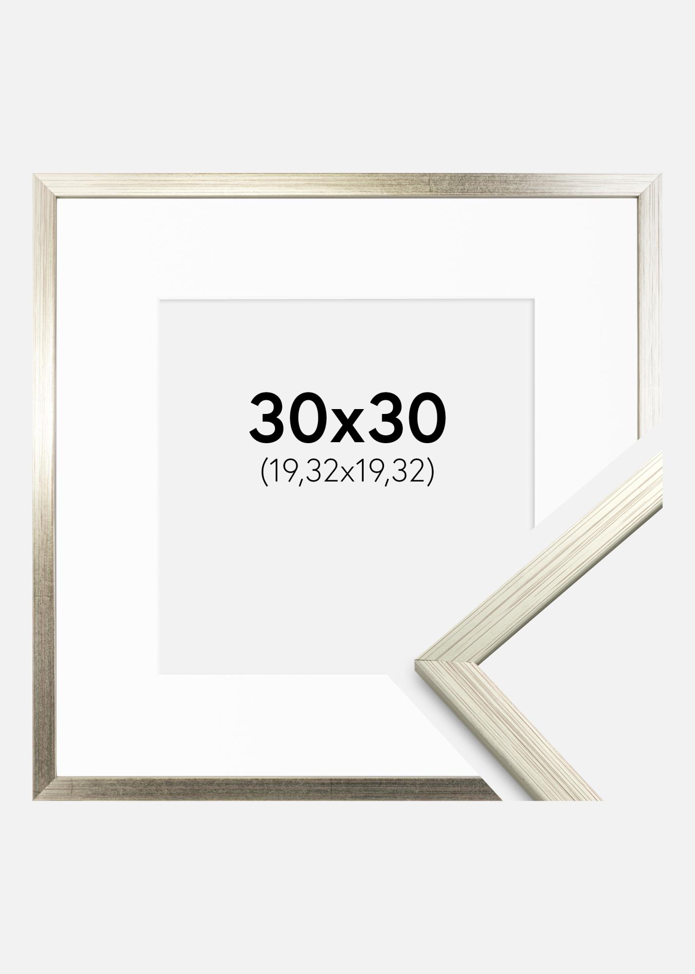 Moldura Edsbyn Prateado 30x30 cm - Passe-partout Branco 8x8 inches