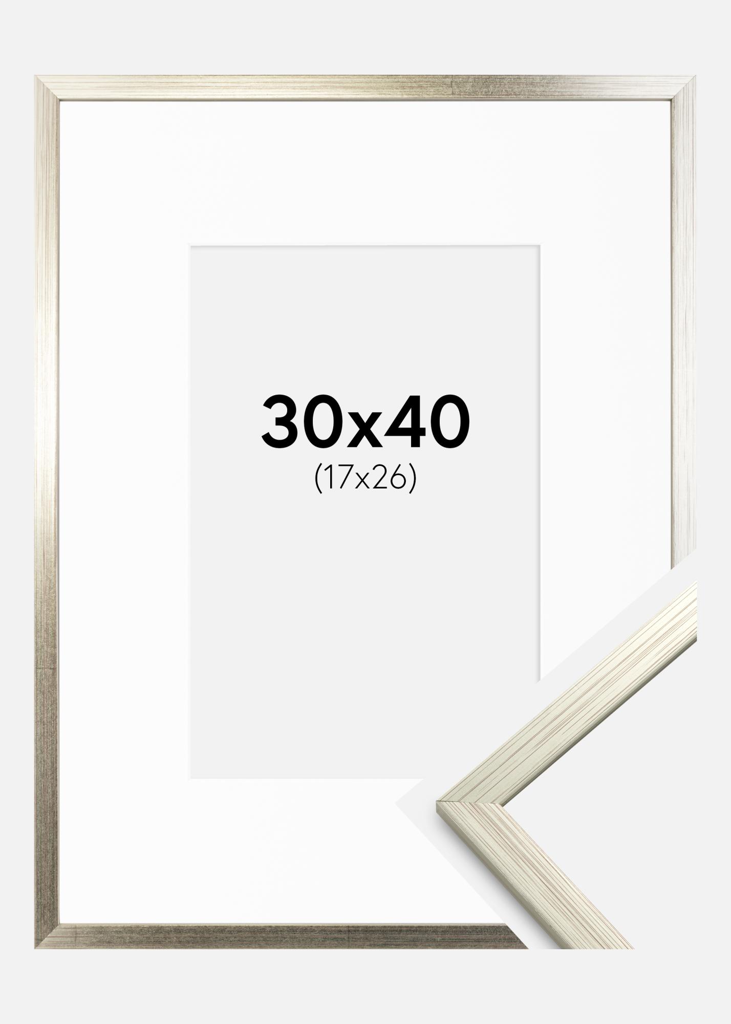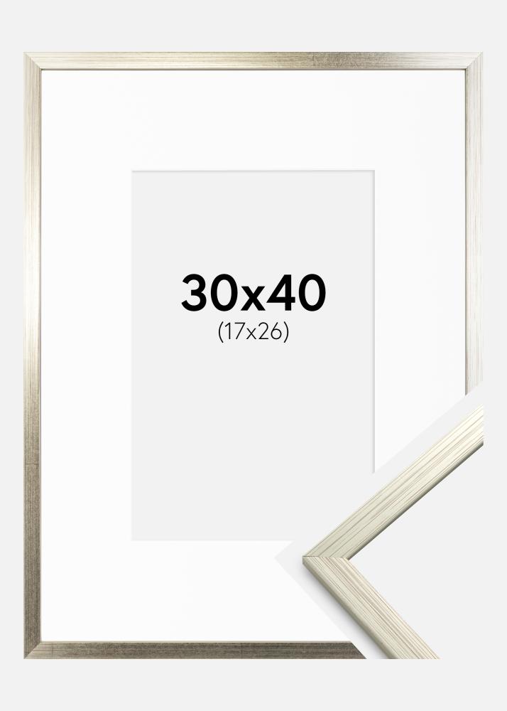 Moldura Edsbyn Prateado 30x40 cm - Passe-partout Branco 18x27 cm