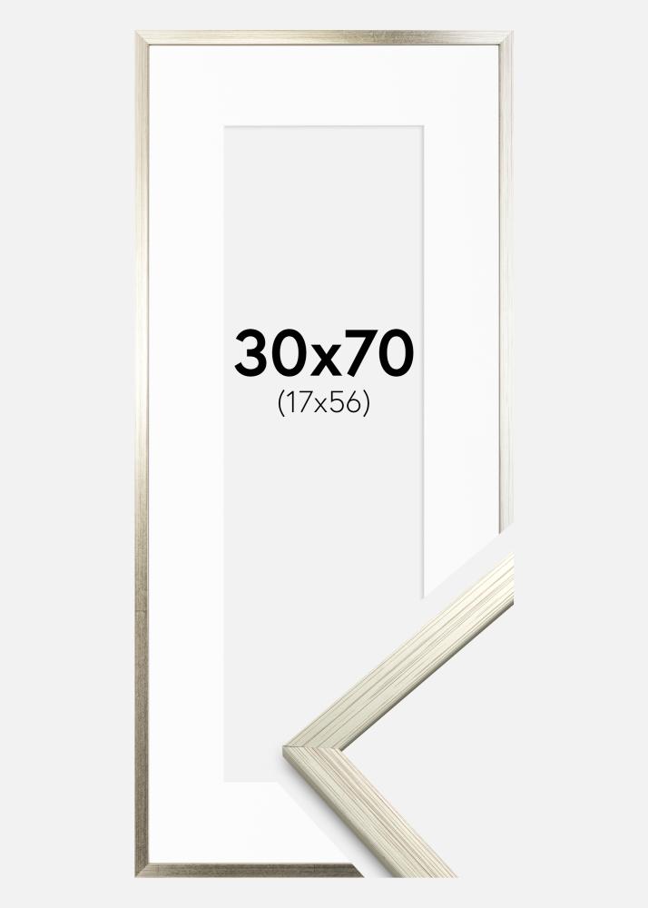 Moldura Edsbyn Prateado 30x70 cm - Passe-partout Branco 18x57 cm
