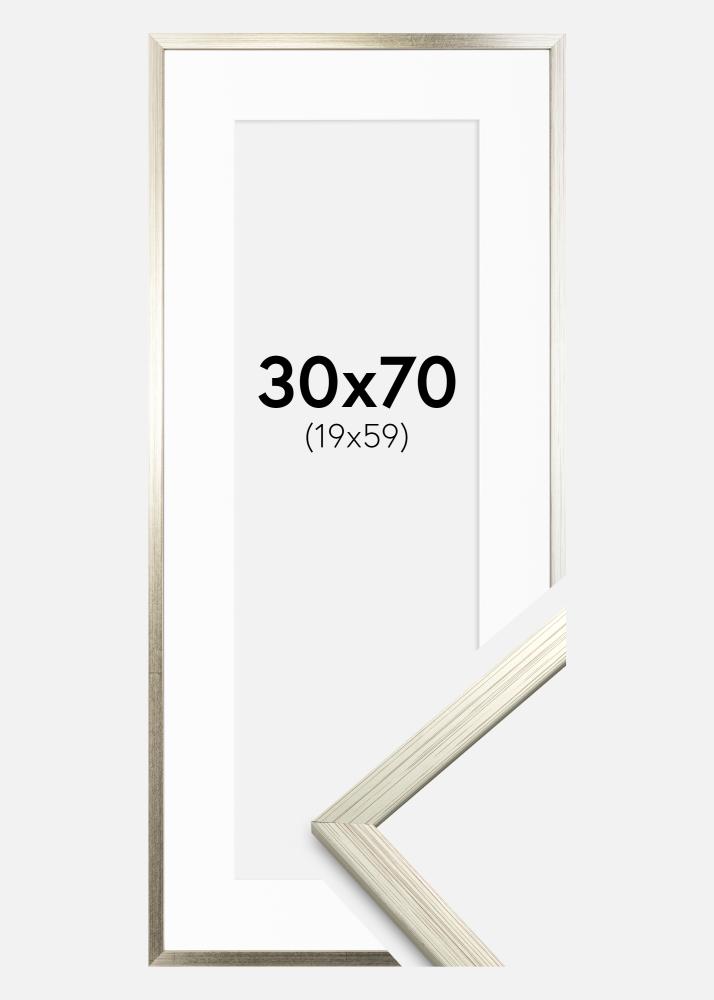 Moldura Edsbyn Prateado 30x70 cm - Passe-partout Branco 20x60 cm