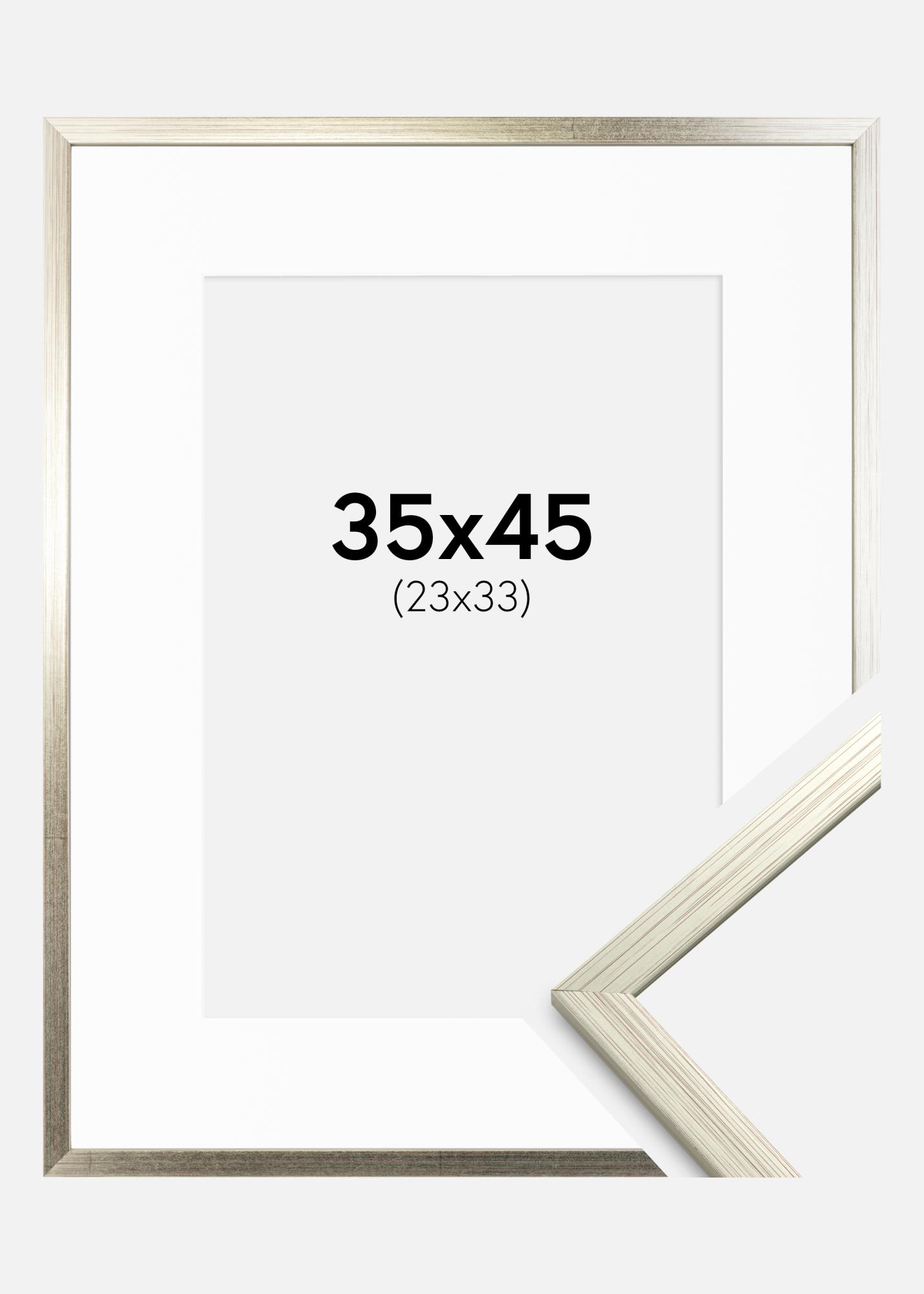 Moldura Edsbyn Prateado 35x45 cm - Passe-partout Branco 24x34 cm