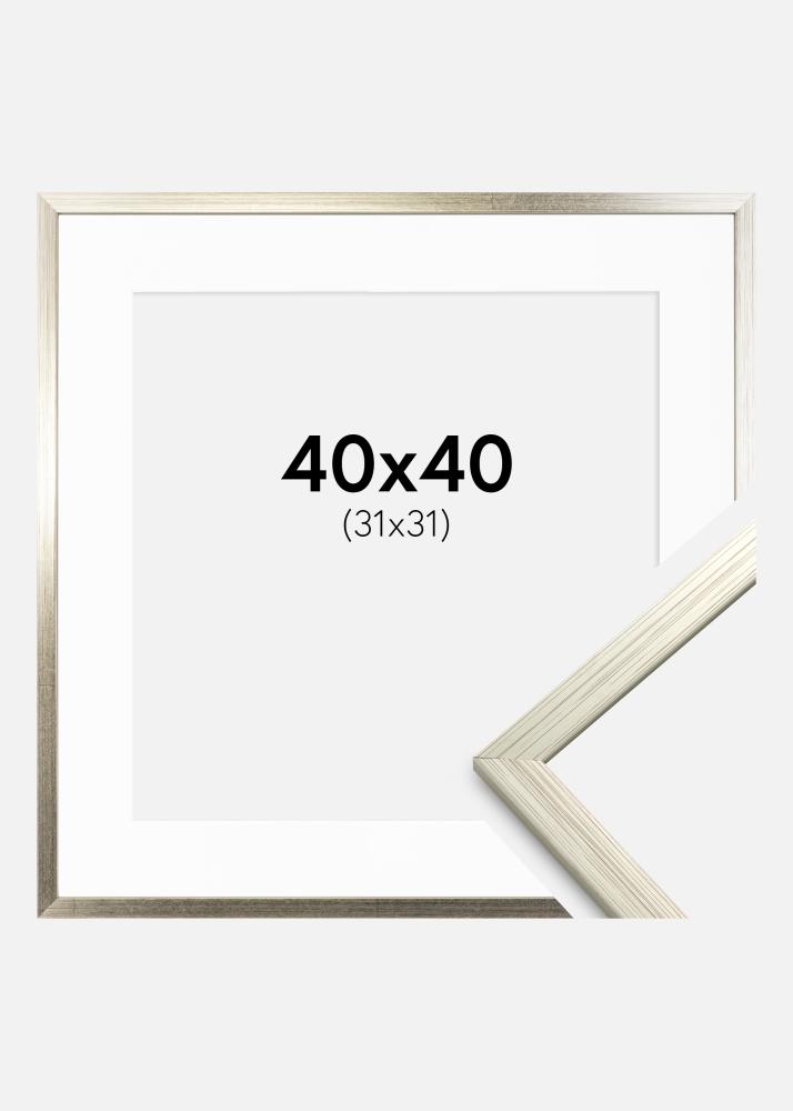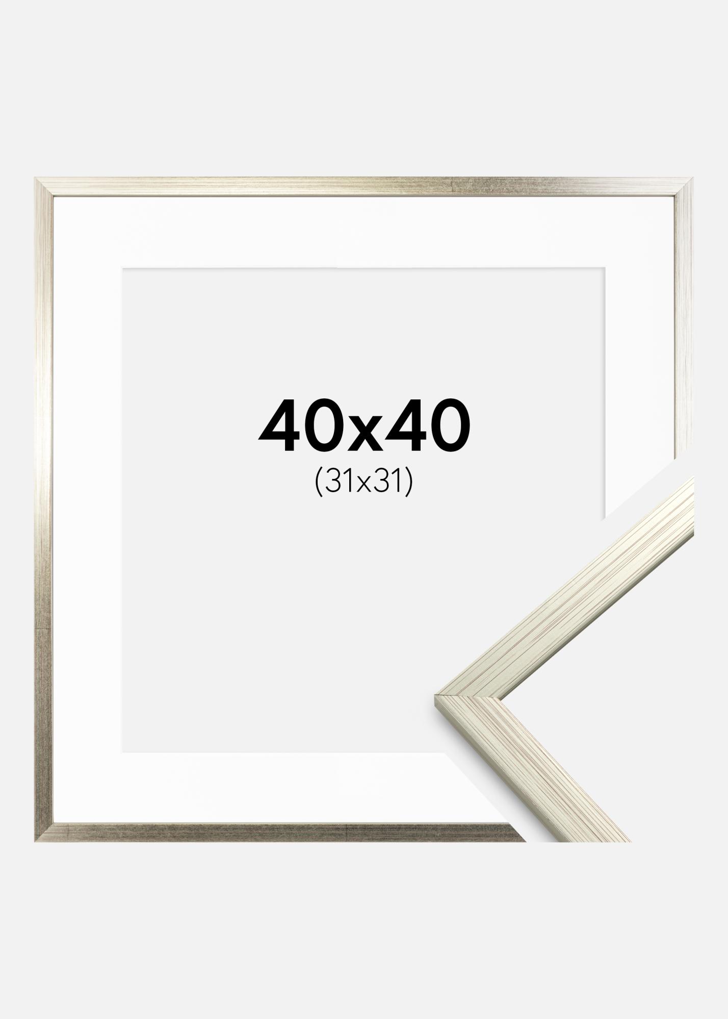 Moldura Edsbyn Prateado 40x40 cm - Passe-partout Branco 32x32 cm