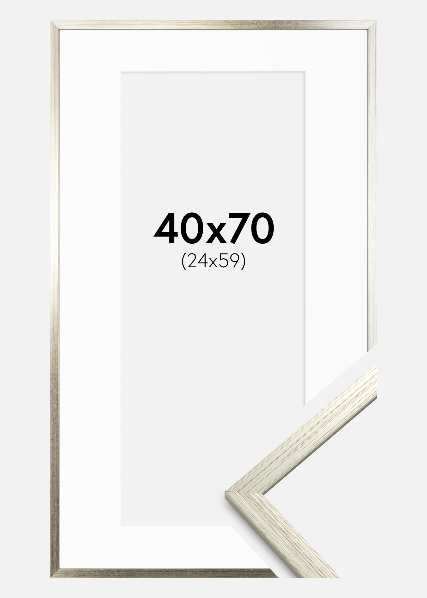 Moldura Edsbyn Prateado 40x70 cm - Passe-partout Branco 25x60 cm