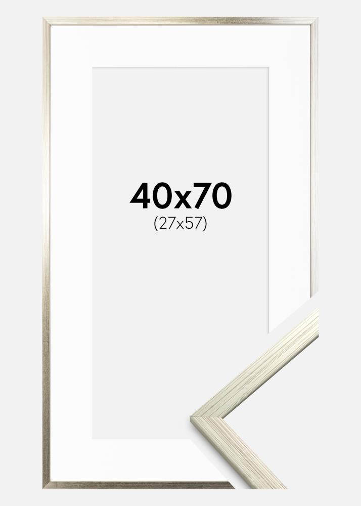Moldura Edsbyn Prateado 40x70 cm - Passe-partout Branco 28x58 cm