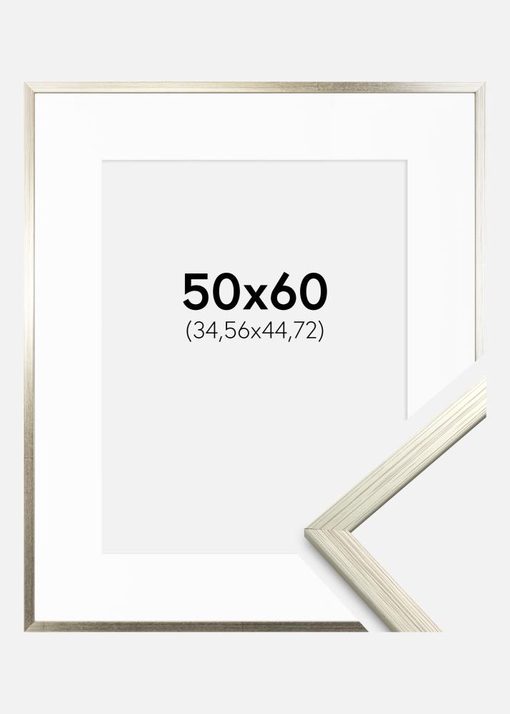 Moldura Edsbyn Prateado 50x60 cm - Passe-partout Branco 14x18 inches
