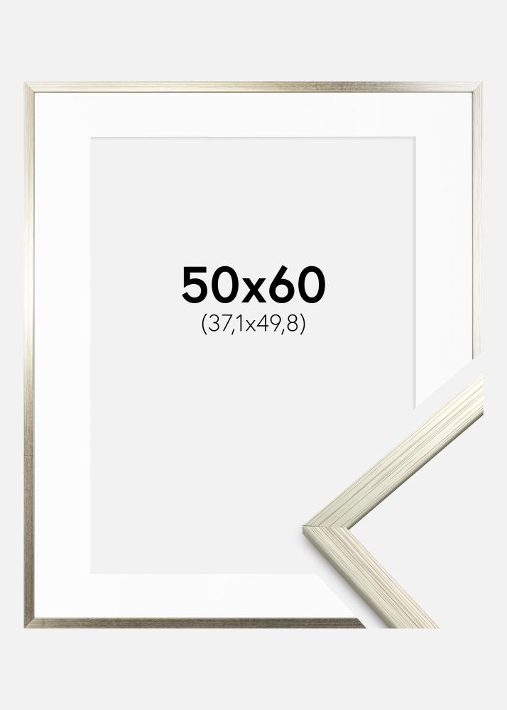 Moldura Edsbyn Prateado 50x60 cm - Passe-partout Branco 15x20 inches