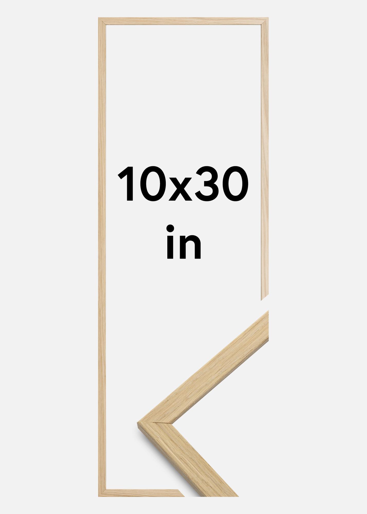 Às vezes, recebemos a pergunta de por que a moldura é feita de folheado de carvalho e não de carvalho maciço real, se ela é uma moldura de qualidade. A razão para isso é que é difícil obter uma superfície controlada quando se trata de carvalho real, pois geralmente há variações de cor em diferentes partes da madeira, o que em alguns contextos é adequado. Mas numa moldura, isso só faz com que pareça que partes da moldura estão descoloridas.