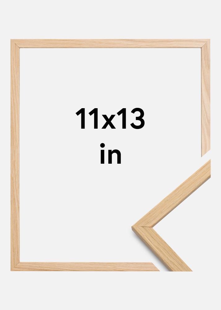 Às vezes, recebemos a pergunta de por que a moldura é feita de folheado de carvalho e não de carvalho maciço real, se ela é uma moldura de qualidade. A razão para isso é que é difícil obter uma superfície controlada quando se trata de carvalho real, pois geralmente há variações de cor em diferentes partes da madeira, o que em alguns contextos é adequado. Mas numa moldura, isso só faz com que pareça que partes da moldura estão descoloridas.