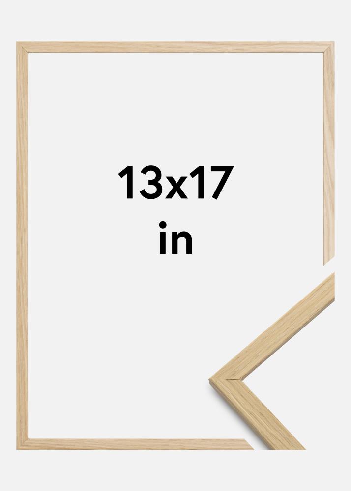 Às vezes, recebemos a pergunta de por que a moldura é feita de folheado de carvalho e não de carvalho maciço real, se ela é uma moldura de qualidade. A razão para isso é que é difícil obter uma superfície controlada quando se trata de carvalho real, pois geralmente há variações de cor em diferentes partes da madeira, o que em alguns contextos é adequado. Mas numa moldura, isso só faz com que pareça que partes da moldura estão descoloridas.