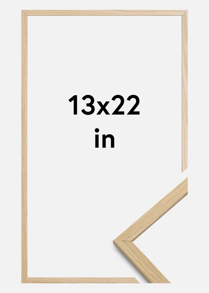 Às vezes, recebemos a pergunta de por que a moldura é feita de folheado de carvalho e não de carvalho maciço real, se ela é uma moldura de qualidade. A razão para isso é que é difícil obter uma superfície controlada quando se trata de carvalho real, pois geralmente há variações de cor em diferentes partes da madeira, o que em alguns contextos é adequado. Mas numa moldura, isso só faz com que pareça que partes da moldura estão descoloridas.