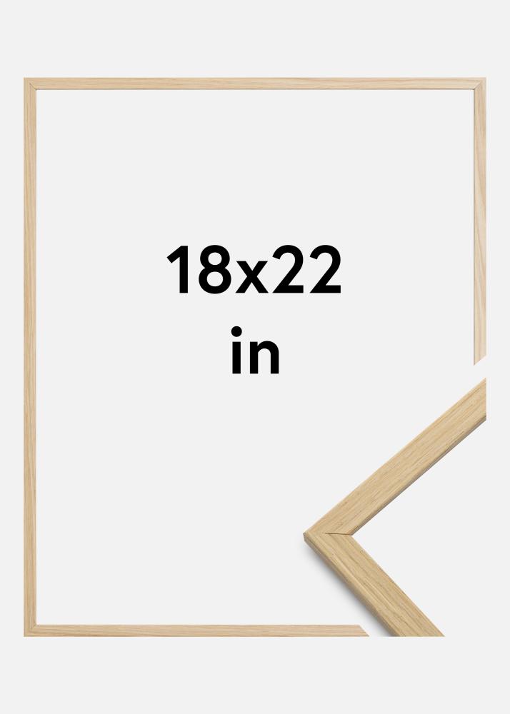Às vezes, recebemos a pergunta de por que a moldura é feita de folheado de carvalho e não de carvalho maciço real, se ela é uma moldura de qualidade. A razão para isso é que é difícil obter uma superfície controlada quando se trata de carvalho real, pois geralmente há variações de cor em diferentes partes da madeira, o que em alguns contextos é adequado. Mas numa moldura, isso só faz com que pareça que partes da moldura estão descoloridas.