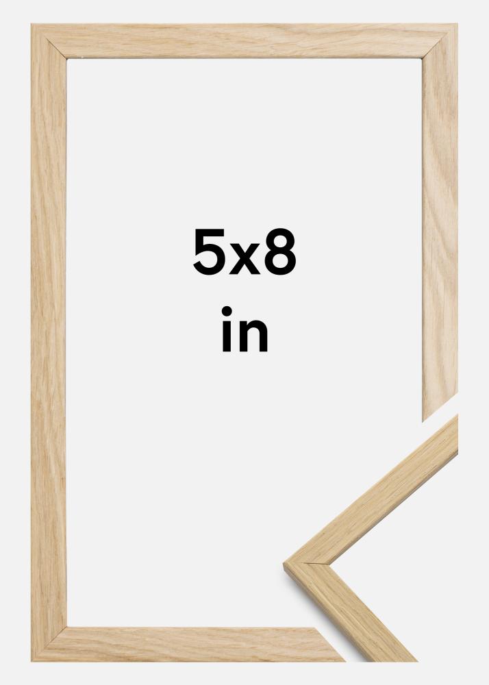 Às vezes, recebemos a pergunta de por que a moldura é feita de folheado de carvalho e não de carvalho maciço real, se ela é uma moldura de qualidade. A razão para isso é que é difícil obter uma superfície controlada quando se trata de carvalho real, pois geralmente há variações de cor em diferentes partes da madeira, o que em alguns contextos é adequado. Mas numa moldura, isso só faz com que pareça que partes da moldura estão descoloridas.