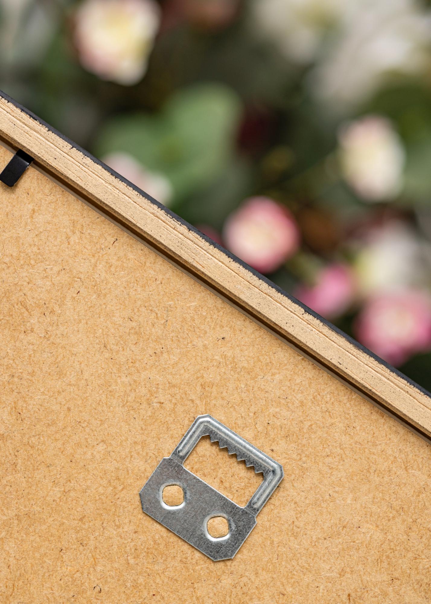 Edsbyn Preta é uma moldura de qualidade fabricada na Suécia em madeira de ayous autêntica. A moldura é pintada de preto, o que confere-lhe uma aparência moderna e atemporal, algo que também é reforçado pelo perfil quadrado. A faixa da moldura tem 13 mm de largura e 11,5 mm de profundidade, o que faz com que a moldura seja fina, mas ao mesmo tempo sólida e estável. Existem suportes de parede para pendurar tanto na vertical quanto na horizontal. A moldura tem uma profundidade falsa (profundidade interna) de 8 mm e muito espaço caso você queira complementar sua imagem com um elegante passe-partout. O verso é feito de MDF e é mantido no lugar com pequenos pinos de metal que podem ser facilmente dobrados para cima quando quiser montar a sua imagem.