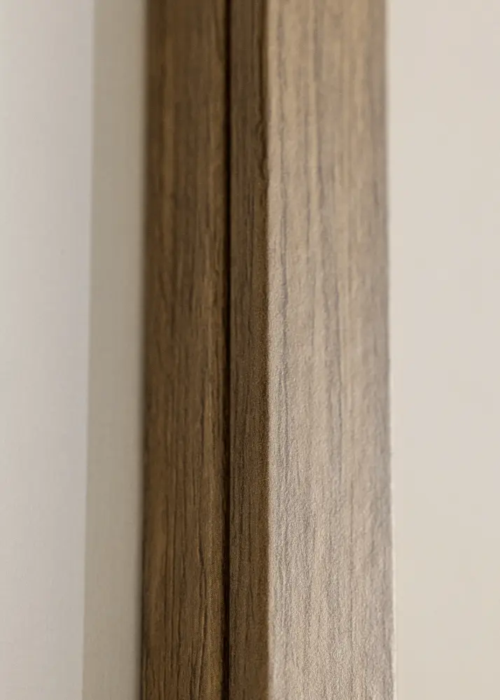 Elegante moldura de caixa com uma superfície de madeira marrom com veios, com uma profundidade de 30 mm. A moldura também inclui uma lista de espaçamento que permite emoldurar facilmente outras coisas além de imagens, como uma camisa de futebol, por exemplo. Isso torna o "Elegant Box Brun" uma moldura com muitas possibilidades. A moldura também inclui um passe-partout branco passe-partout.