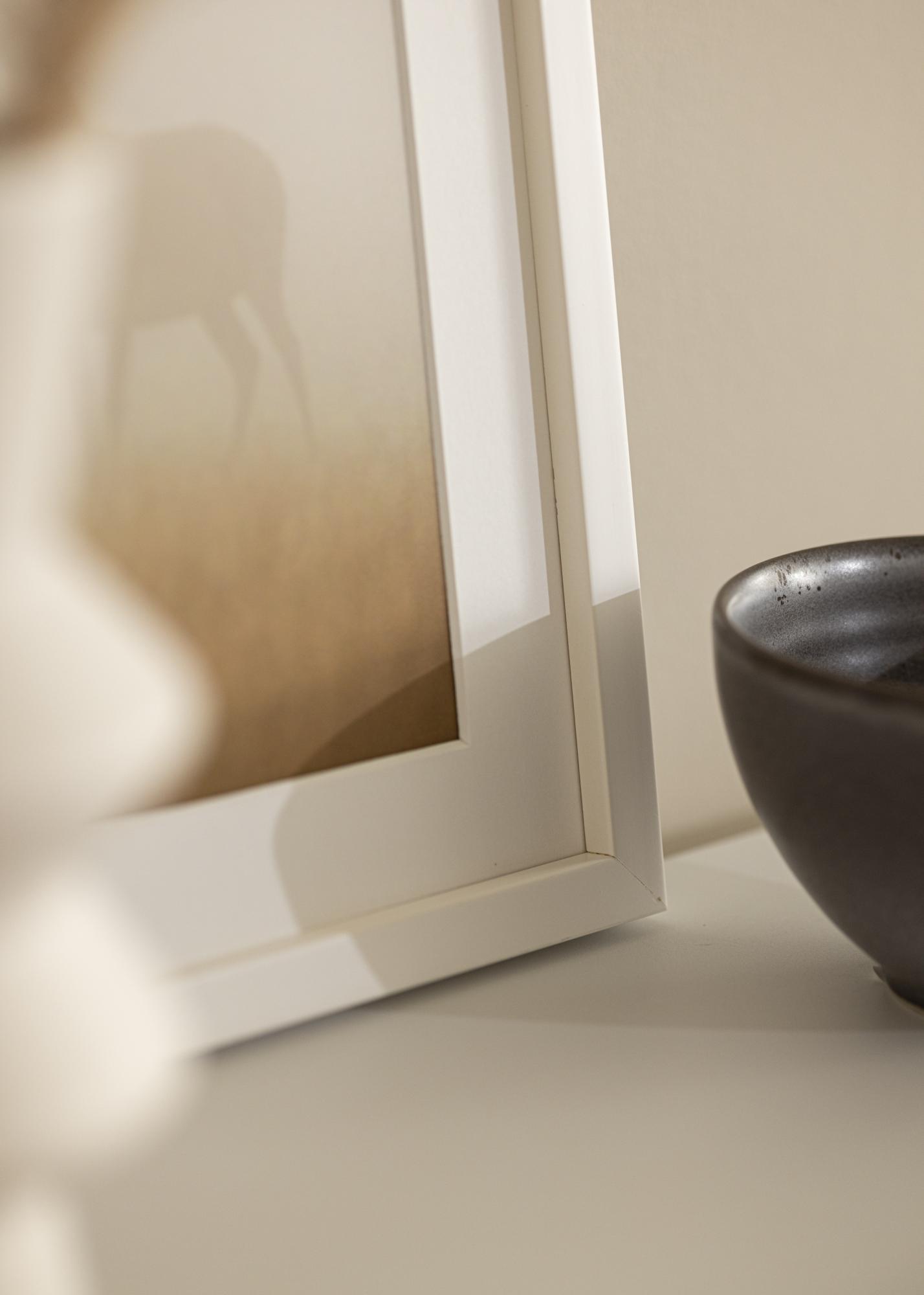 Esta é uma elegante moldura de qualidade em madeira pintada. A moldura tem uma profundidade de 22 mm, o que a torna um detalhe de decoração chamativo que se destaca um pouco da parede. A tonalidade branca complementa tanto motivos clássicos quanto modernos sem roubar o foco das imagens.
