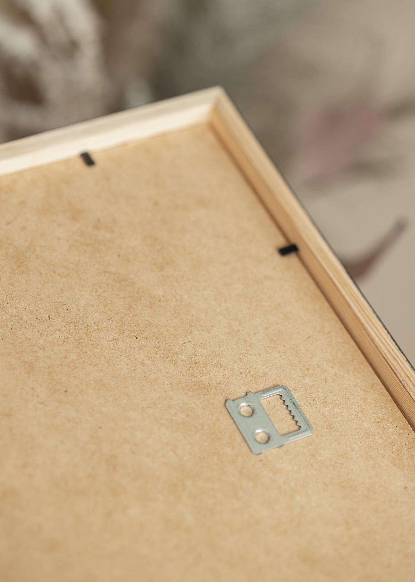 A moldura pode ser montada na parede tanto na posição vertical quanto na horizontal, e fica tão bem sozinha na parede quanto em combinação com outras molduras. Na parte de trás, há uma placa de HDF que é mantida no lugar por pequenos pregos. Para inserir seus motivos, basta dobrar os pregos e remover a placa traseira.