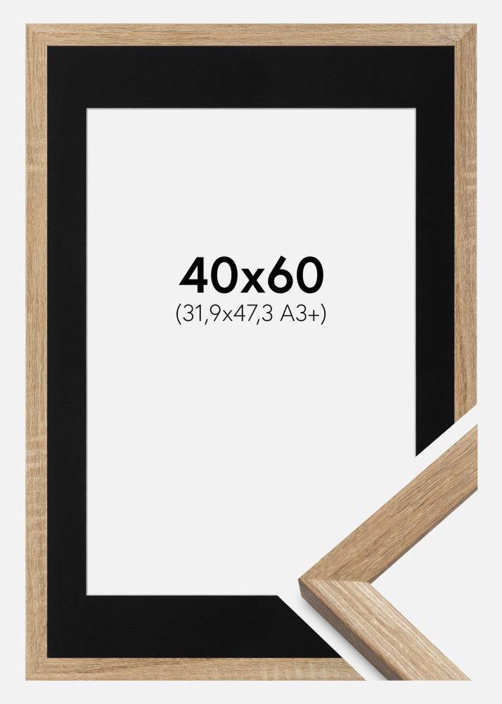 Moldura Fiorito Carvalho-claro 40x60 cm - Passe-partout Preto 32,9x48,3 cm (A3+)