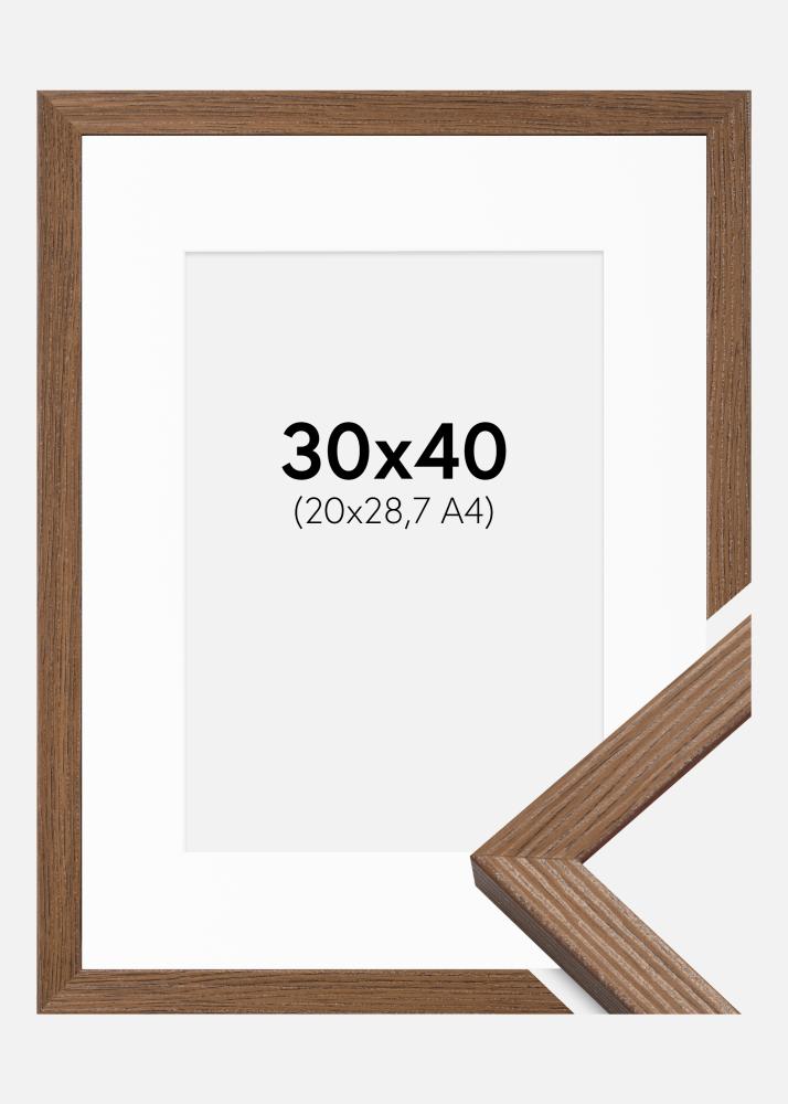 Moldura Fiorito Carvalho-escuro 30x40 cm - Passe-partout Branco 21x29,7 cm (A4)
