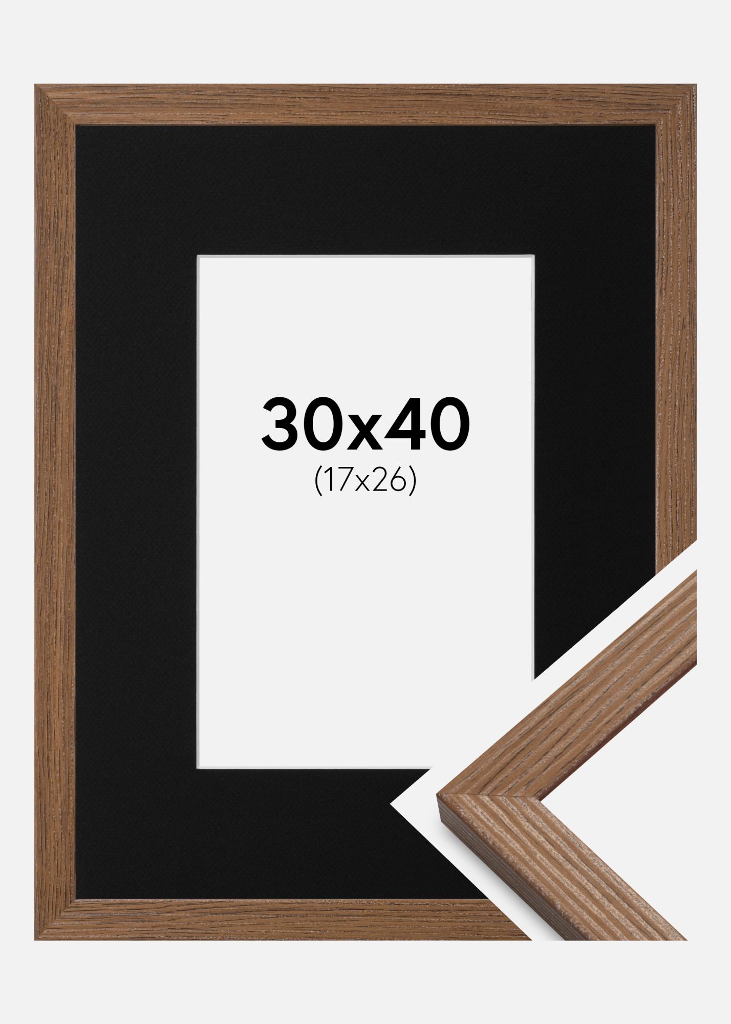 Moldura Fiorito Carvalho-escuro 30x40 cm - Passe-partout Preto 18x27 cm