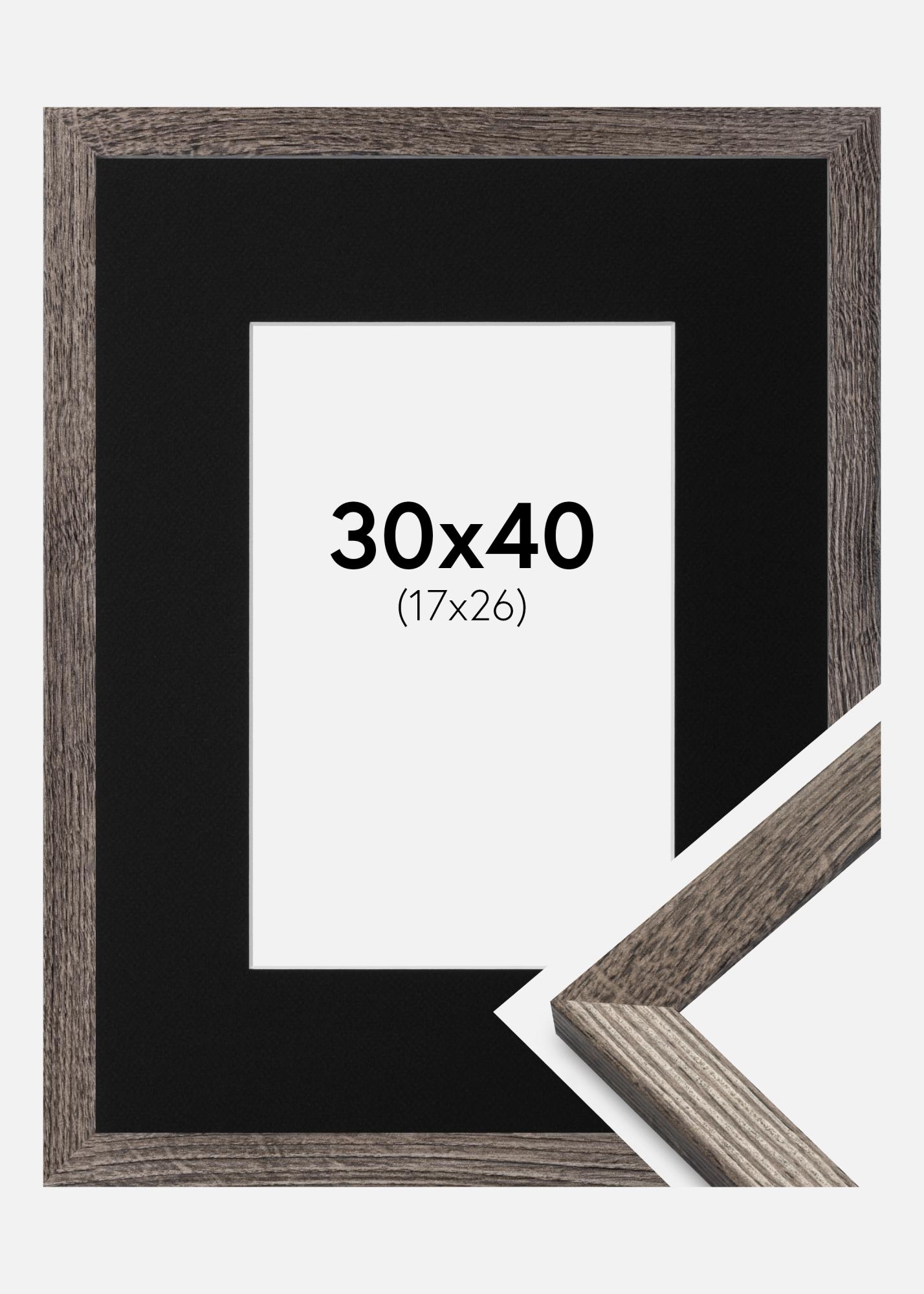 Moldura Fiorito Nogueira 30x40 cm - Passe-partout Preto 18x27 cm