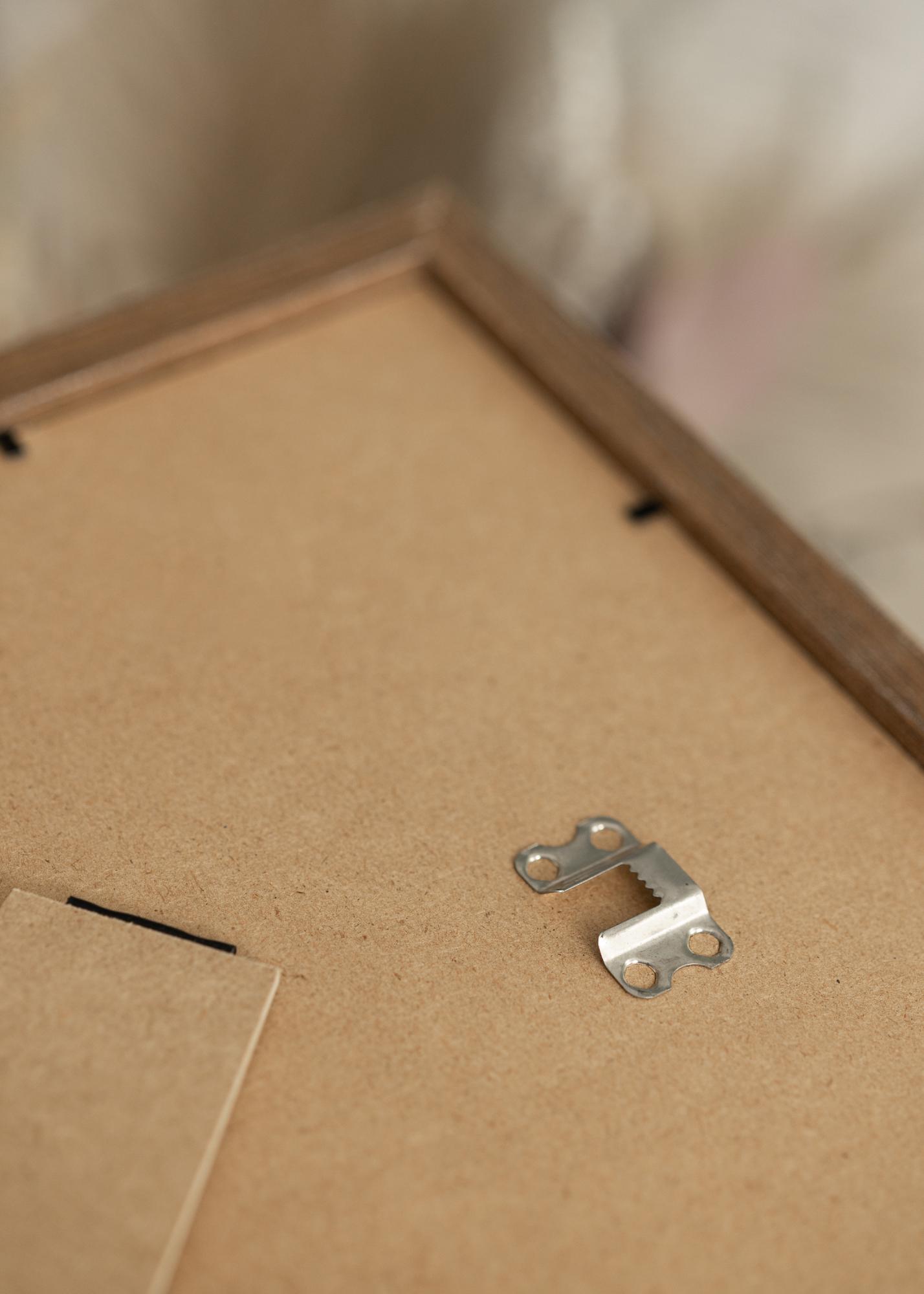 A moldura tem uma elegante moldura curva para dentro, com 20 mm de largura e 20 mm de profundidade. Ela tem uma profundidade generosa de 13 mm, para que tenha espaço para complementar o seus motivos com um passe-partout elegante. Pode facilmente montar tanto a imagem quanto o passe-partout na moldura, graças aos práticos pinos dobráveis na parte de trás, que mantêm o fundo no lugar.