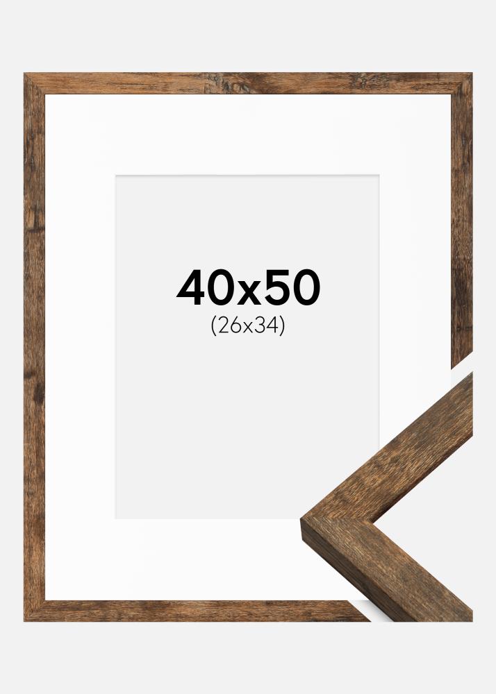 Moldura Fiorito Washed Oak 40x50 cm - Passe-partout Branco 27x35 cm