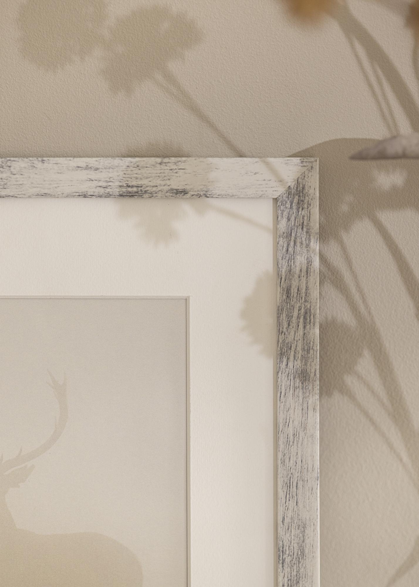Esta moldura para quadros com aparência de carvalho branco pintado tem uma sensação rústica e romântica. Uma moldura com aquele aspecto decorativamente gasto que faz parecer que ela esteve por aí por um tempo. O perfil tem uma inclinação discreta em direção ao vidro, o que dá ao seu motivo uma moldura elegante e impactante.